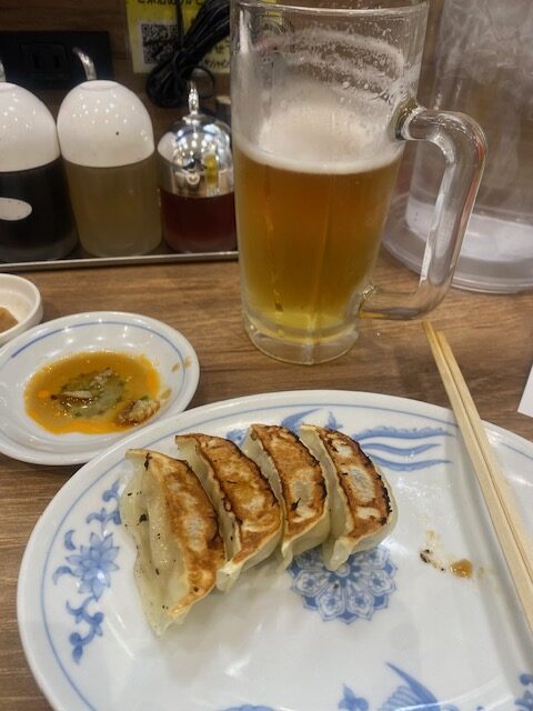 そのまま家に帰れず、福しんに寄ってビール餃子野菜炒目セットを注文した。